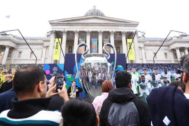 比赛日当天伦敦的天气算不上美好,气温仍在15度左右徘徊,但好歹没再下雨。欧足联将欧冠奖杯挪到了市中心的特拉法加广场,以供球迷合影拍照,并让“大耳朵杯”在那里逗留到了下午3点。这一系列举措也成功避免了3年前欧洲杯决赛的尴尬状况再度重演:一直到开球前,温布利附近的人流始终都在可控范围之内,主办方甚至没有出动骑警前去维持秩序。