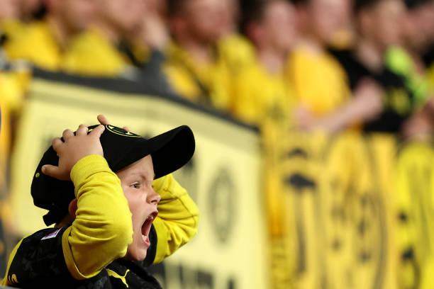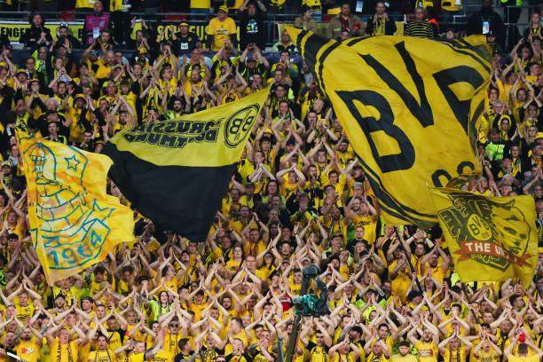 这一幕闹剧多多少少分散了球员的注意力。在这种情况下,多特似乎在看台上球迷的震天助威声中率先觉醒。黄黑军团这一侧的看台犹如军阵一般,中间前排的凸出处有专人鸣鼓控制节奏,看台上10几面大型旌旗迎风挥舞,在视觉上同样气势非凡。而两翼的球迷时而左右应和,时而制造出整齐划一的声浪,轻松在看台上形成了压制。多特蒙德在这种恐怖的声浪中一度主宰了比赛,只是他们在门前的一系列绝佳机会都未能转化为进球。